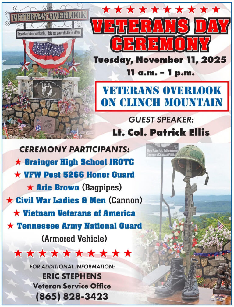 RUTLEDGE — Grainger County will honor its veterans with a public ceremony on Tuesday, November 11, from 11 a.m. to 1 p.m. at Veterans… Login to continue reading Login…